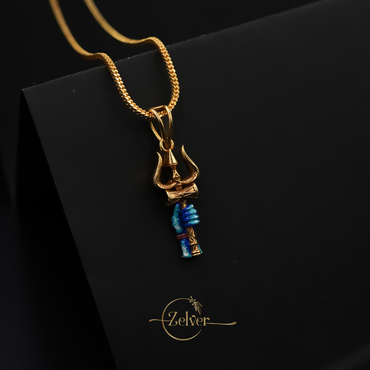 This is a Trishul pendant made from 925 sterling silver with a gold-tone finish. The Trishul is a powerful symbol that represents strength, protection, and balance. The pendant has a clean, simple design with a small blue-green enamel painting at the bottom, adding a subtle pop of color. This necklace is easy to style and can be worn daily or on special occasions. It’s also a meaningful choice for gifting, especially for someone who values spiritual symbolism with a modern look.