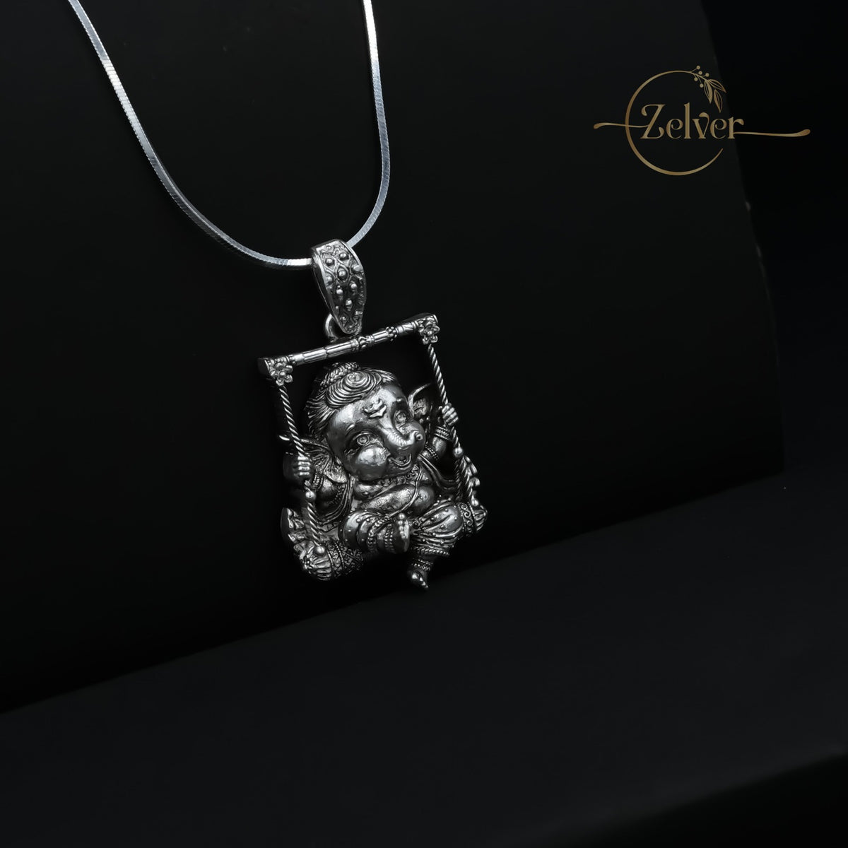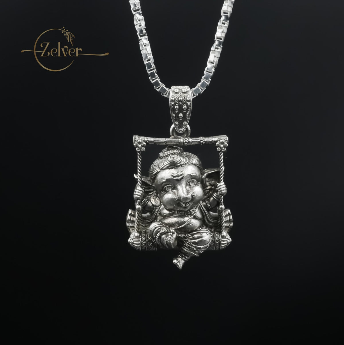 Capture the spirit of divine joy. This 925 sterling silver pendant shows a youthful Lord Ganesha swinging playfully, a timeless image of happiness and innocence. It's a charming piece that radiates positive energy.