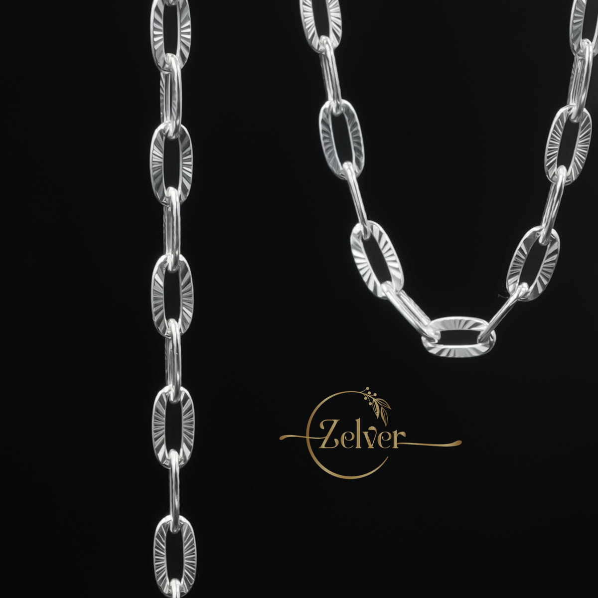 • Design: Oval Links with Textured / Diamond-Cut surface.